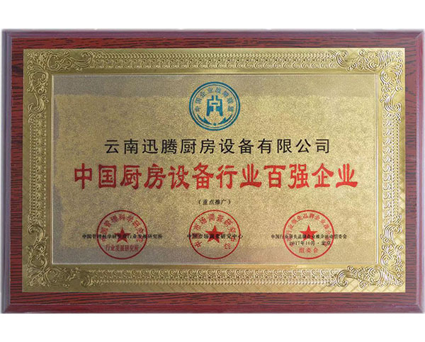 中國廚房設備行業(yè)百強企業(yè)榮譽證書